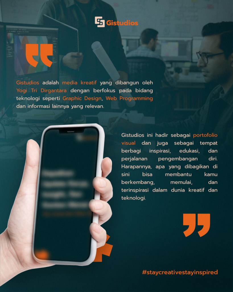 Saat ini, saya juga membagikan karya desain dan hasil pengembangan web melalui akun Instagram @gistudios__ sebagai bagian dari perjalanan saya dalam membangun portofolio profesional di bidang desain dan teknologi.